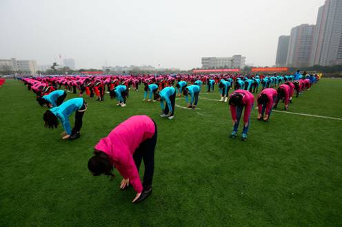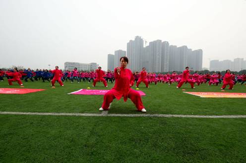 学校历来高度重视体育运动的开展,在体育运动设施建设、体育工作经费投入以及群体活动的组织等方面给予大力支持,体育工作取得了长足发展,极大地丰富了校园文化生活,也为进一步增强师生的健康体质奠定了扎实的基础。太极拳、八段锦等传统保健体育运动在我校有着广泛的群众基础,是建设中医药特色大学文化的重要组成部分。我校教职工历来有习练太极拳和健身气功的传统,今天的健身气功八段锦展示也是2013年全国“百城千村”健身气功交流展示系列活动之一。学校多次举办教职工太极拳比赛和集体八段锦演练展示,学校中医传统健身队还多次参加省市传统保健体育运动竞赛,获得佳绩。本次千名教职工齐演八段锦正是广大教职工坚持“每天锻炼一小时,健康工作五十年,幸福生活一辈子”的理念,勇于进取、不懈努力,积极投身学校事业的表现。