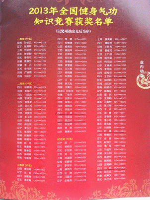 在体育学院传统运动养生教研室组织下,我校2012级体育教育专业王琴、贾云祥等5位同学,在中国健身气功协会首次举办的“2013年全国健身气功知识竞赛”活动中,分别获得三等奖和纪念奖。其中,王琴、贾云祥获得三等奖,王芝林、何琳、孙凯获得纪念奖。