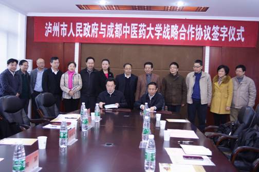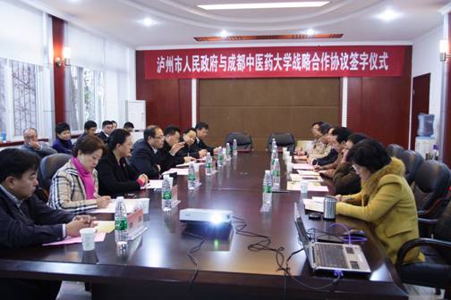 泸州市经信委、投促局、泸县、高新区医药产业园以及我校校办、教务处、研究生处、药学院等有关负责人参加了签字仪式。
