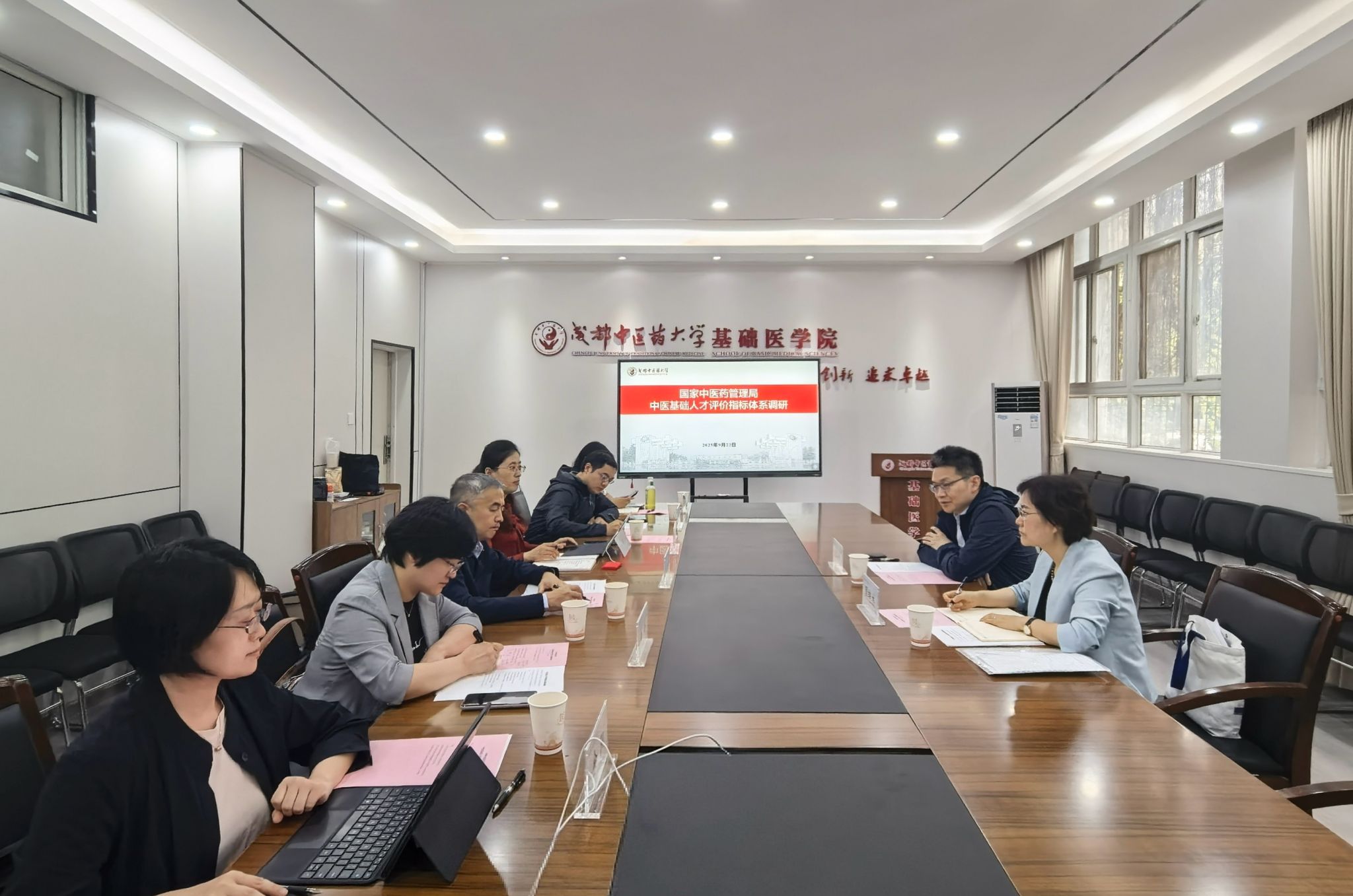 为加强中医人才队伍建设与考核评价,构建分领域多维度中医药人才评价体系,按照中医药人才评价体系建设课题调研方案,中华中医药学会副秘书长陈俊峰、师承继教部主任周艳杰于9月22日来我校开展中医基础人才评价工作情况调研。学校党委常委、副校长冯全生,人事处处长戴鸥,基础医学院主持行政工作副院长姜岑及相关学科一线教师参加调研座谈会,会议由周艳杰主持。