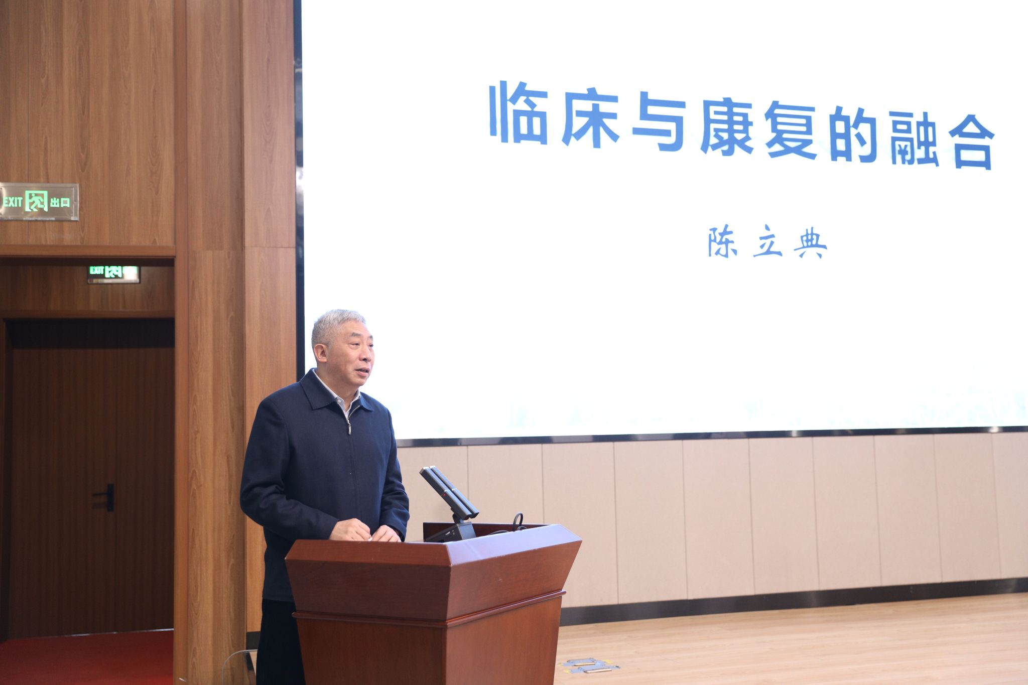 最后,陈立典教授以“临床与康复的融合”为题作学术报告。报告深入阐述了在新时代卫生健康理念下,临床医学与康复医学深度融合的必要性、路径与前景,尤其是中医康复在康复医学中的重要贡献和长远意义。报告引发了与会者的热烈反响与深入思考。