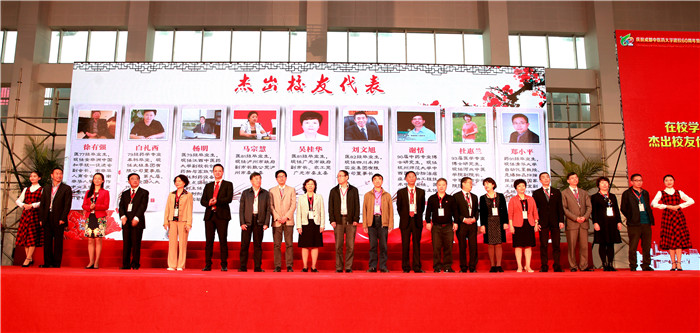 会上,还举行了学校领导为7位创校元老代表颁发纪念章并献花、在校学生为19位杰出校友代表献花、6位中医名师传承拜师仪式和4家企业捐赠仪式等活动。