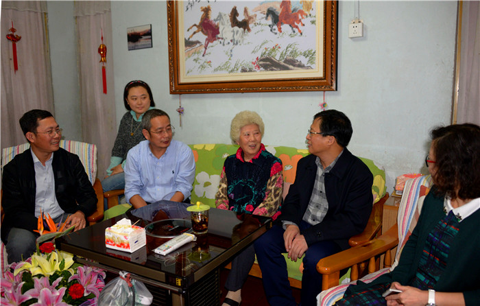 10月19日下午,在六十周年校庆来临之际,副校长彭成率离退休工作处处长汤良平、药学院院长傅超美等,登门看望了我校中药学奠基人凌一揆教授的家属李仕素老师。彭成对李老师的身体情况和生活状况进行了仔细的询问,回忆和赞扬了凌老对学校以及中医药事业作出的巨大贡献,也介绍了学校60年校庆的相关庆祝活动。他特别介绍10月25日下午即将举行的凌一揆学术思想传承与创新会,将由凌老的优秀弟子对凌老的学术思想进行深入阐述和发扬,另将有优秀的研究生及凌一揆基地班本科生上台汇报学习科研成果。大家表示,一定要在老领导打下的良好基础上推进学校的再次腾飞,创造新的发展业绩,不辜负老领导的殷切希望。彭成还对同行人员说,学校、学院要千方百计尽力照顾好老同志,为他们做好事、办实事、解难事。李老师也对学校和学院领导对她的关怀和关心表达了由衷的感谢。