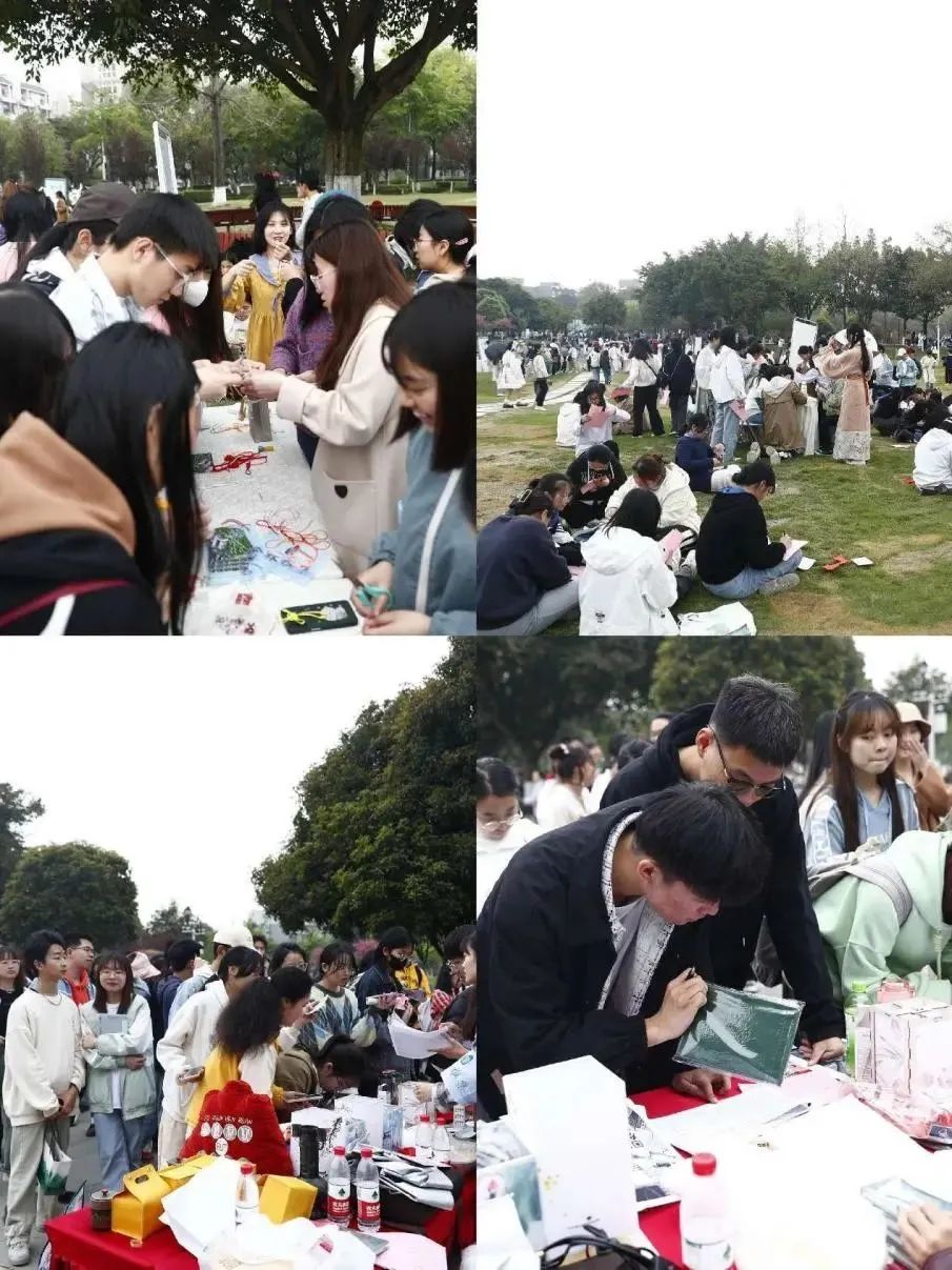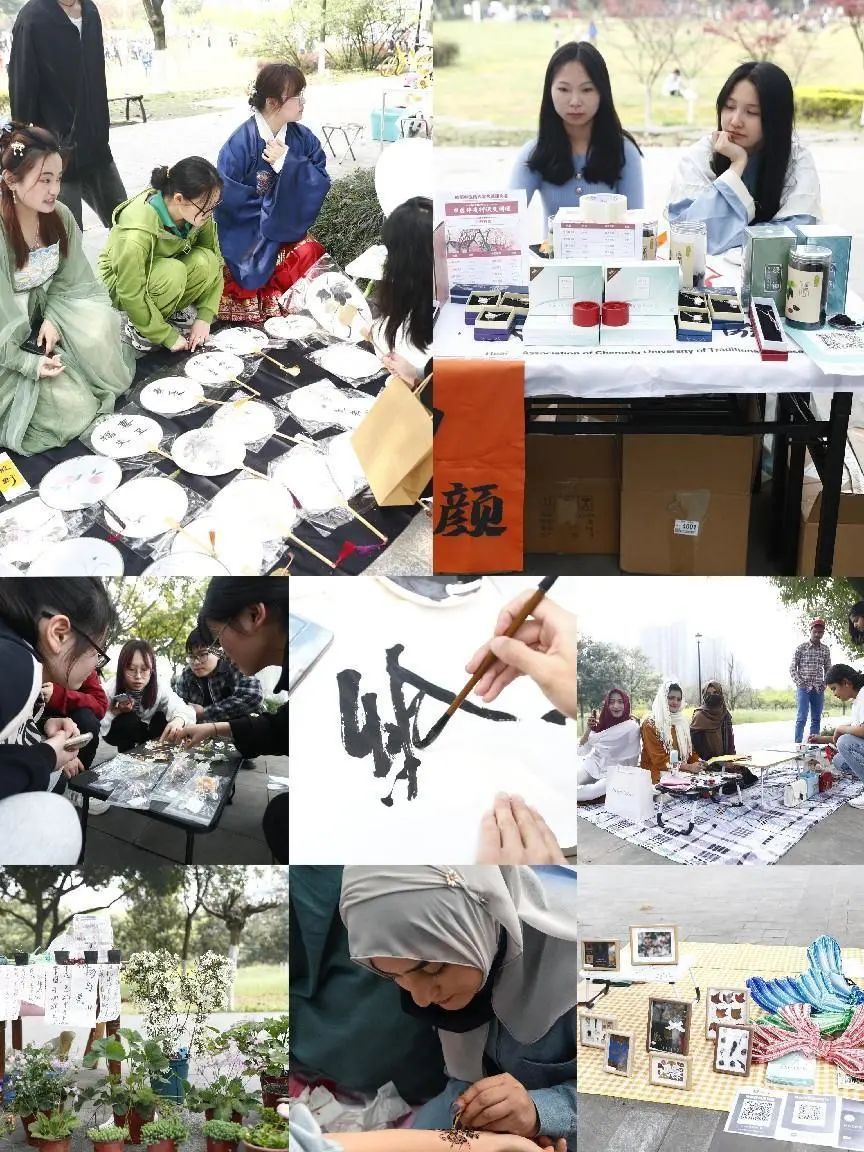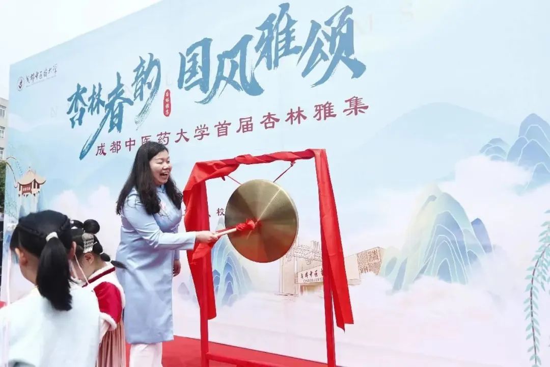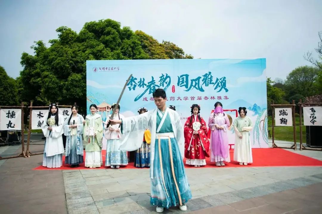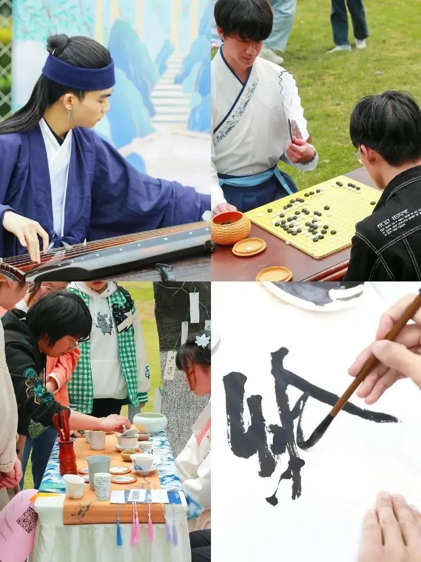 春和景明,惠风和畅,正是成中医大美时节, 3月30日和4月1日两天,一场别开生面的大型沉浸式传统文化体验活动在学校草坪-湿地景观区举行。活动以“杏林春韵·国风雅颂”--成都中医药大学首届杏林雅集为主题,通过琴、棋、茶、诗等经典元素再现中式生活美学仪式,徜徉于百花环绕的“花间集市”,同学们可以沉浸式体验三十余项传统文化活动,5100余人次师生体验了古代文人朋友圈的社交活动。副校长曾芳,党委学生工作部(处)/招生就业处副处长杜娟、邱挺和学院分管学生工作领导、辅导员出席本次活动。