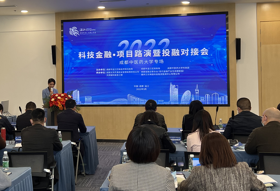 3月30日,“2022科技金融项目路演暨投融资对接会成都中医药大学专场活动”在成都市温江区医养金融功能区成功举办。本次活动由成都市温江区新经济和科技局、温江区财政局、成都中医药大学科技园主办,成都光华开源资本管理有限责任公司、成都金融业联合会(现代金融产业生态圈联盟)、天府国际基金小镇、重庆江北嘴国际投融资路演中心有限公司共同承办,此次活动旨在进一步加强资本方与项目方的有效对接,促进成都中医药大学科技成果转化和产融对接,同时也是践行党中央、国务院关于推动成渝地区双城经济圈建设的战略部署,共同促进双城经济社会与高校科研、人才、学科的融合发展。