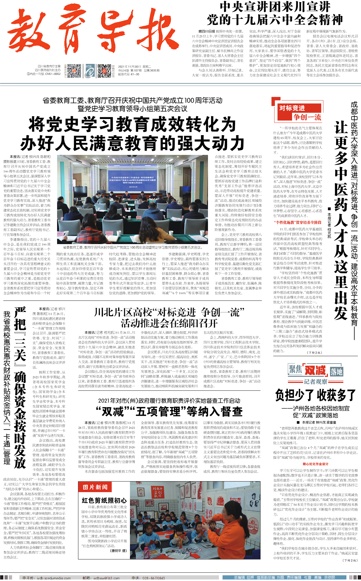2021年11月30日,《教育导报》头版以《让更多中医药人才从这里出发》专题报道我校深入推进“对标竞进、争创一流”活动,建设高水平本科教育情况。以下为报道全文: