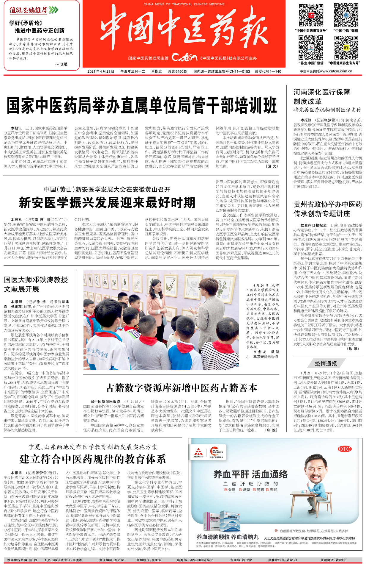 《中国中医药报》(头版):中医药文化展在成都中医药大学附属小学开幕 发布时间:2021-04-26 00:00:00 浏览次数: 次 【字体:小 大】 来源:《中国中医药报》(头版)内容:4月20日,成都中医药大学博物馆主办的中医药文化展在成都中医药大学附属小学开幕,展览涉及馆藏文物,中药标本、名医处方展、名医画像等,由成都中医药大学老师讲解,小学师生共三千余人观展。同学们纷纷表示,要向先贤学习,怀仁德,存仁爱,努力增长本领。文愈龙 常湖川 王其奇摄影报道(编辑/霍文巍 尹婷婷) 【打印正文】 上一条:四川卫视科教频道:第十二届全国中医药博士生学术论坛在成都举行 下一条:成都日报“锦观”新闻:全省首个!成都中医药大学“马克思主义理论学习红区”今日启用