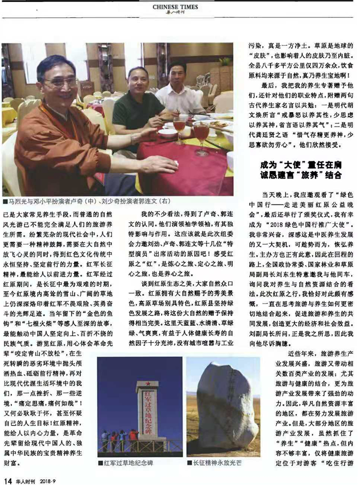 《华人时刊》:“红色”提精神 “绿色”养身心—感悟“绿色中国行·走进美丽红原”主题活动 发布时间:2019-02-15 00:00:00 浏览次数: 次 【字体:小 大】 【打印正文】 上一条:成都发布:成都中医药大学携手中国电信 率先打造“互联网+中医药扶贫”合作新模式 下一条:《人民日报海外版》:“言温论疫”张之文(妙手国医)