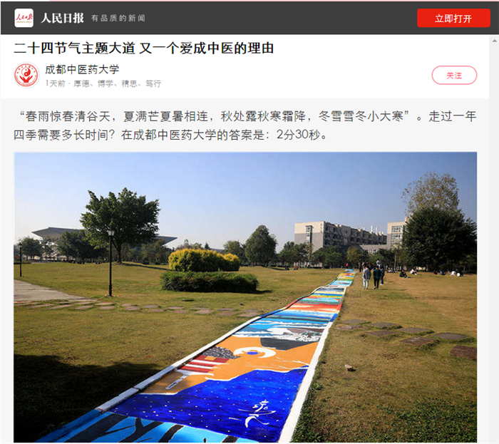 “春雨惊春清谷天,夏满芒夏暑相连,秋处露秋寒霜降,冬雪雪冬小大寒”。走过一年四季需要多长时间?在成都中医药大学的答案是:2分30秒。