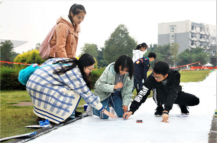 周立军老师介绍,这是由后勤基建处、公寓党总支主办,公寓服务中心、公寓团总支承办的“爱我校园”创意彩绘大赛。24个节气的创意作画分别由学校15个学院的学生承担,具体参与绘画人数达200余人,其中还不包括公寓团总支参与物资准备、活动组织、保障服务、现场维护等大量基础性工作的近200名学生干部。此外,还发起了线上活动,26000多人在网上关注和投票,结合现场评比决出了最终奖项。