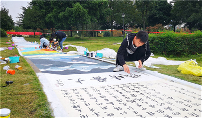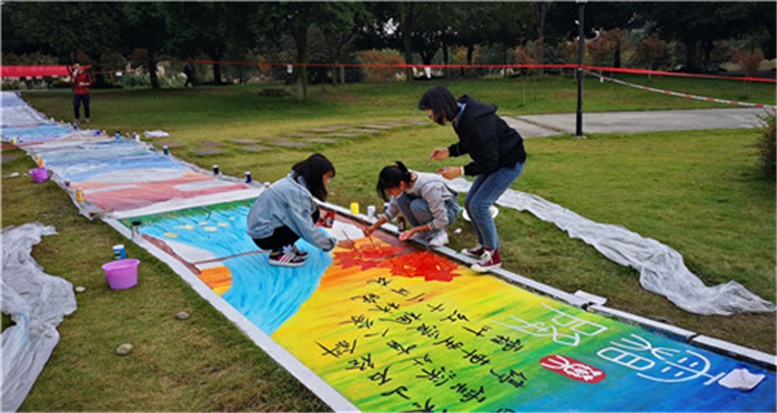 周立军老师介绍,这是由后勤基建处、公寓党总支主办,公寓服务中心、公寓团总支承办的“爱我校园”创意彩绘大赛。24个节气的创意作画分别由学校15个学院的学生承担,具体参与绘画人数达200余人,其中还不包括公寓团总支参与物资准备、活动组织、保障服务、现场维护等大量基础性工作的近200名学生干部。此外,还发起了线上活动,26000多人在网上关注和投票,结合现场评比决出了最终奖项。