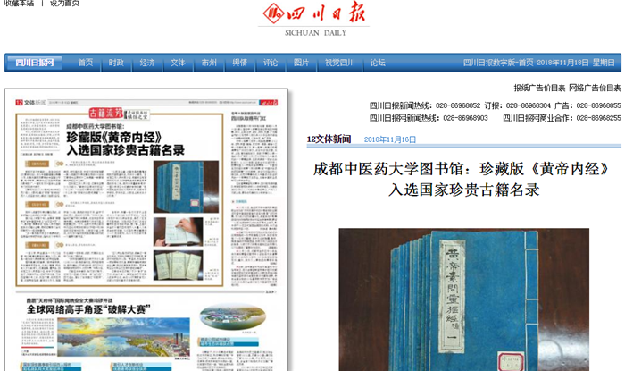 成都中医药大学图书馆:珍藏版《黄帝内经》入选国家珍贵古籍名录