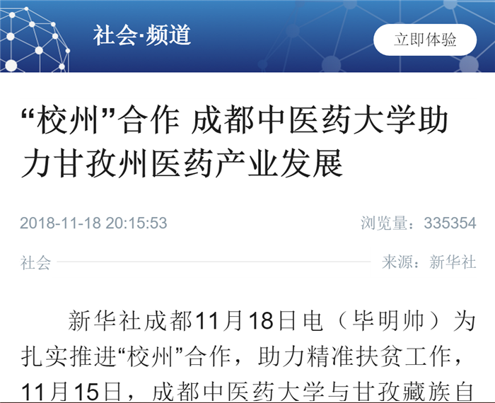“校州”合作 成都中医药大学助力甘孜州医药产业发展