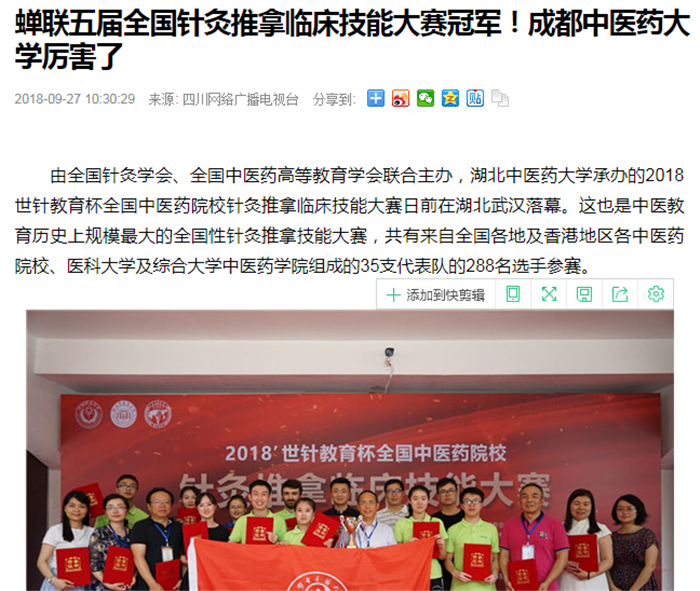 蝉联五届全国针灸推拿临床技能大赛冠军!成都中医药大学厉害了