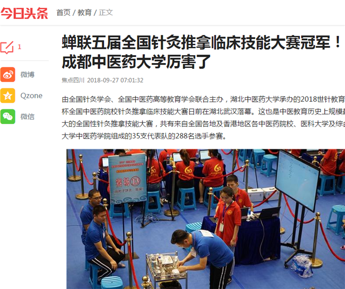 蝉联五届全国针灸推拿临床技能大赛冠军!成都中医药大学厉害了