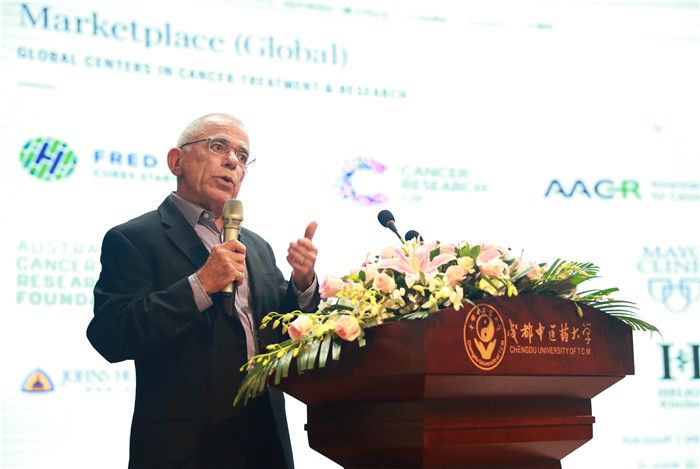 校长余曙光致欢迎辞。他介绍,癌症将成为21世纪死亡的首要因素,是世界各国提高预期寿命的最重要障碍,是当前人类最大的健康挑战之一。在癌症的百年研究历史中,手术治疗、化学治疗、放射线治疗、靶向治疗、免疫疗法等纷纷涌现,发现负性免疫调节治疗癌症疗法的美国和日本科学家还获得了2018年诺贝尔生理学或医学奖。中医药治疗也是癌症的特色疗法之一,具有与放、化疗结合,起减毒与增敏作用;可有效改善患者临床症状,提高生存质量;可有效提高肿瘤稳定率,延长生存时间;可有效改善患者免疫状态等特点和优势。