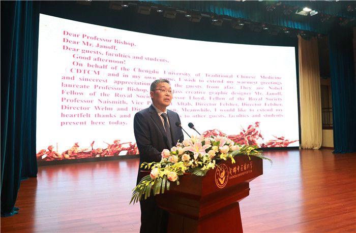 活动现场大咖云集,1989年诺贝尔生理学或医学奖获得者、美国科学院院士、美国艺术与科学院院士、英国皇家科学院院士毕晓普(J Michael Bishop)教授,苹果商标设计者简诺夫(Rob Janoff)先生,英国皇家科学院院士劳埃德(Robert Lloyd)教授,英国皇家科学院院士奈史密斯(James Naismith)教授,以及Exelixis公司企业营运执行阿夫塔布(Dana Aftab)副总裁、斯坦福大学肿瘤学研究所费尔舍(Dean Felsher)所长、犹他大学细胞反应及调控项目威尔姆(Alana Welm)主任、南京医科大学发育遗传系史蒂文(Steven)主任等重量级嘉宾专程前往成都中医药大学,见证中西医强强联合,开启防治癌症研究新篇章。