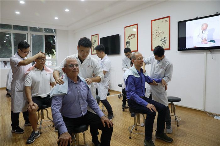 会议结束后,简诺夫等来宾漫步校园,参观了学校博物馆,与中医药文化亲密接触,并亲身体验中医推拿的奇妙。
