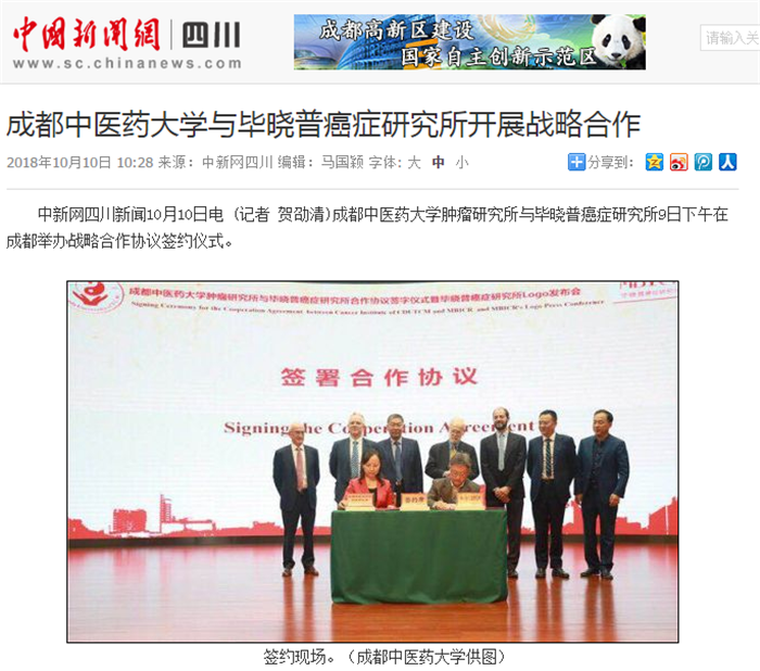 根据校企合作框架协议,成都中医药大学肿瘤研究所与毕晓普癌症研究所结成战略伙伴,将以共建实验室,科研项目申报等形式开展深度合作,共同攻克世界医学难题。