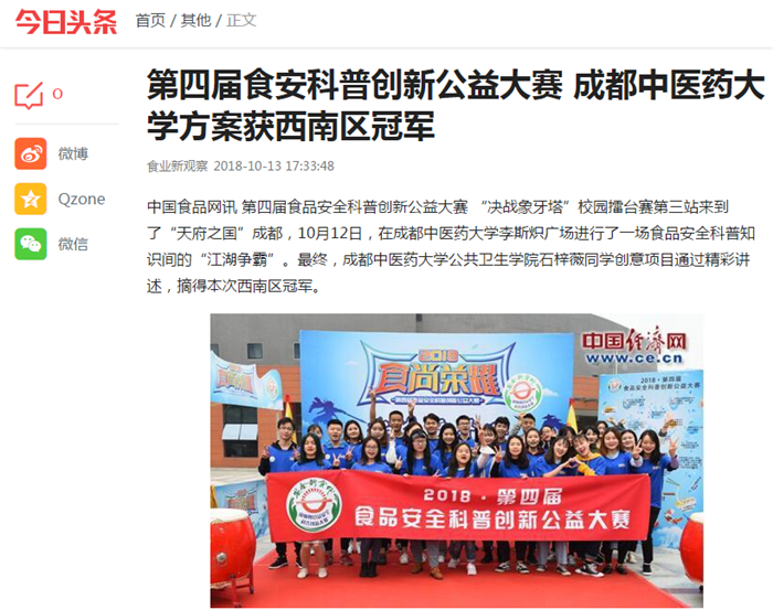 第四届食安科普创新公益大赛 成都中医药大学方案获西南区冠军