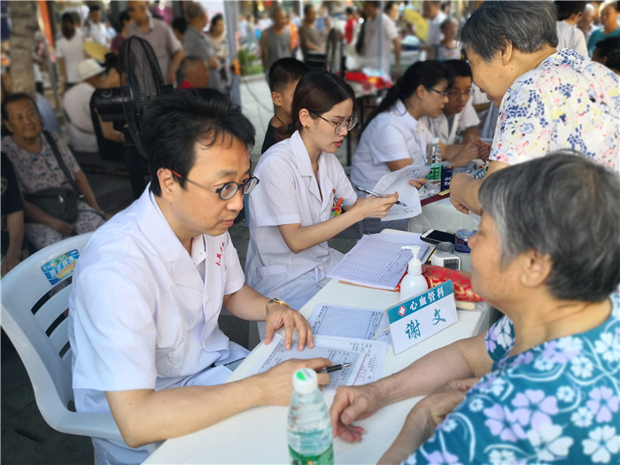 7月29日上午,服务团18名专家在大英县步行街进行义诊,接待就诊群众500余人,画面同样感人。
