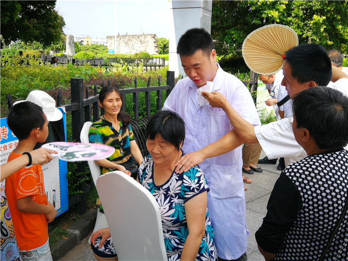 活动现场人头攒动,专家头顶烈日为群众悉心诊疗,群众心存感激为专家打扇驱暑,上演了一场专家为群众,群众爱专家的温馨画面。