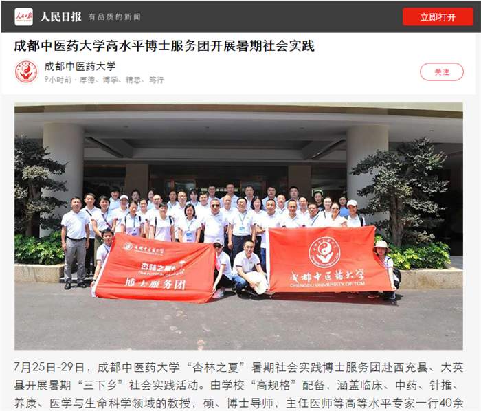 成都中医药大学高水平博士服务团开展暑期社会实践