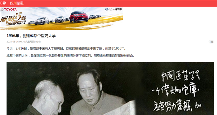 今天,8月16日,是成都中医药大学校庆日。以前的校名是成都中医学院,创建于1956年。