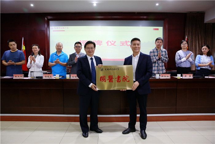 9月14日,成都中医药大学成立国医书院并举行开学典礼,四川省教育厅政策法规与综合改革处副处长钟俊敏出席并代表教育厅向党委书记、国医书院院长刘毅授予国医书院标牌,标志着成都中医药大学医药文融合育人模式新试点项目正式启动。