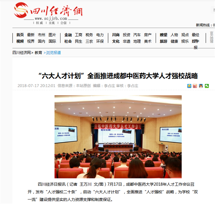 7月17日,成都中医药大学2018年人才工作会议召开,发布“人才强校二十条”,启动“六大人才计划”,全面推进“人才强校”战略,为学校“双一流”建设提供坚实的人力资源支撑和制度保证。