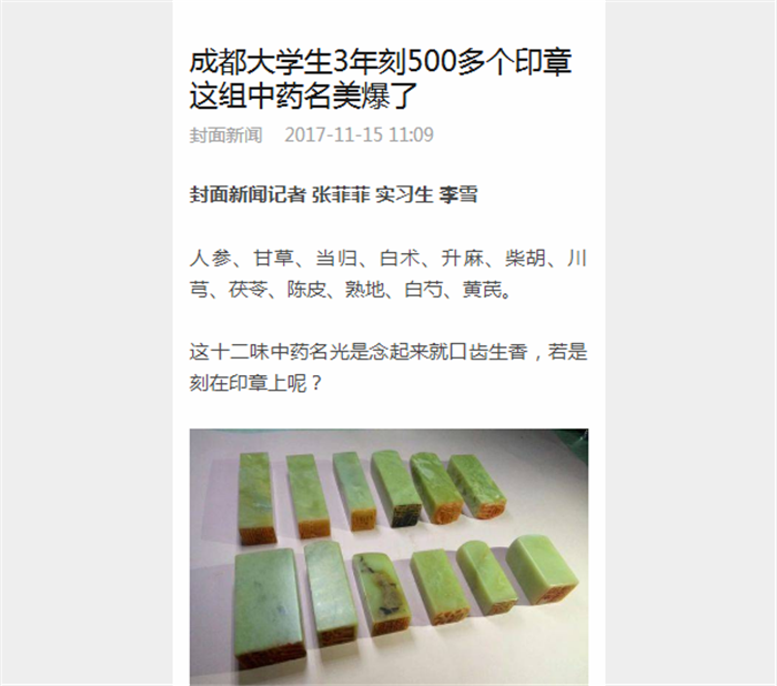 成都大学生3年刻500多个印章 这组中药名美爆了