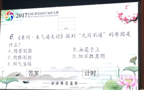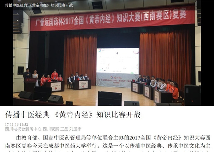 由教育部、国家中医药管理局等单位联合主办的2017全国《黄帝内经》知识大赛西南赛区复赛今天在成都中医药大学举行。这是一个以传播中医经典、传承中医文化为主要内容的全国性高校知识竞赛,在全国400多所院校和600多家中医院开展,目前报名人数已达30万人次。