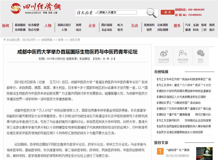 成都中医药大学举办首届国际生物医药与中医药青年论坛