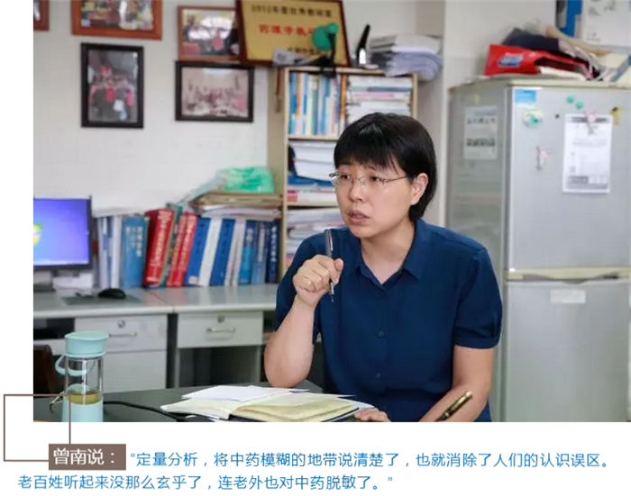 曾南和她的同事们要做的,就是用现代医学的方法对中药进行试验和分析,然后给出科学的论证。看似只是为已有的药写上化学分子结构,但是这种分析已经成了现代中药在进入人们口中之前必经的道路。