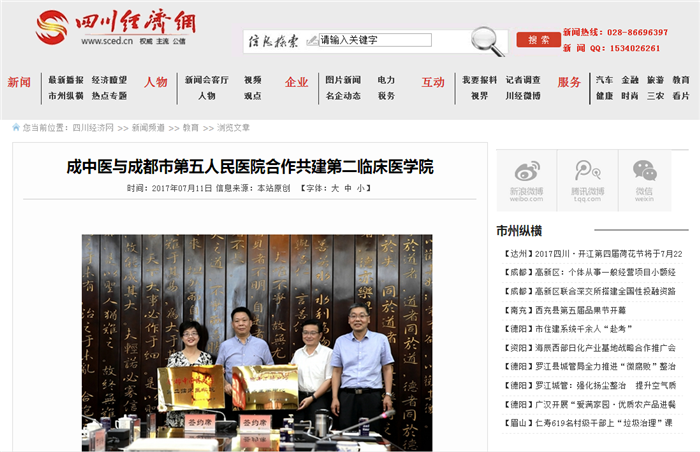 成中医与成都市第五人民医院合作共建第二临床医学院