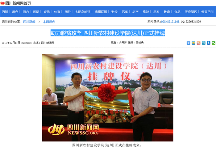 助力脱贫攻坚 四川新农村建设学院(达川)正式挂牌
