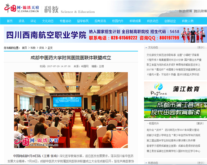 中国网成都7月29日讯(王博 张琦)深化医学教育改革,适应医改发展要求,落实四川省中医药发展大会精神。7月29日,成都中医药大学附属医院医联体联盟成立大会在成都召开。旨在共商医教协同,创新中医医联体联盟新模式。