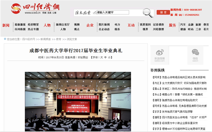 活动现场,成都中医药大学向校级优秀毕业生、省级优秀毕业生颁发获奖证书,向2017届本科毕业生代表、境外毕业生代表颁发毕业证书。