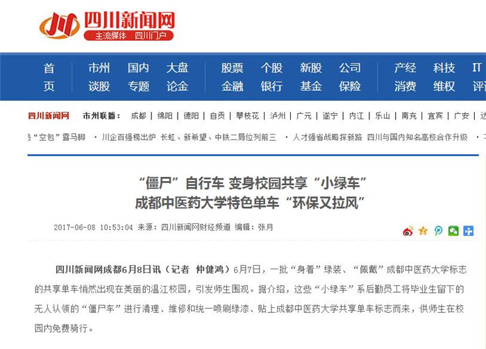 成都中医药大学特色单车“环保又拉风”