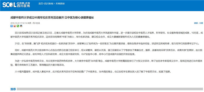 成都中医药大学成立60周年校庆系列活动展开 以中医为核心谋健康福祉
