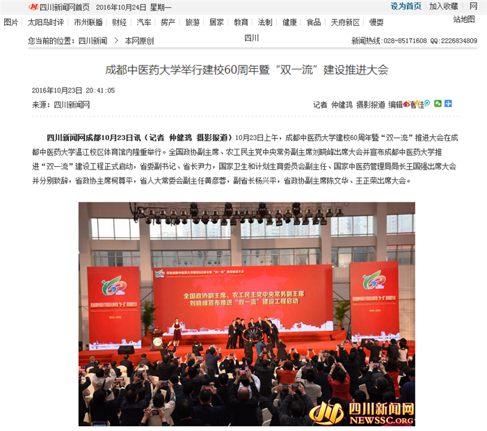 成都中医药大学举行建校60周年暨“双一流”建设推进大会