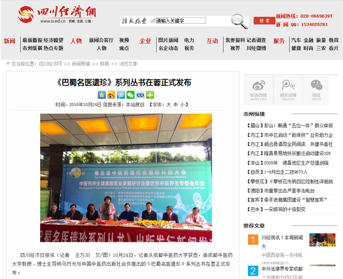 四川经济日报讯(记者 王万川 文/图)10月24日,记者从成都中医药大学获悉,由成都中医药大学教授、博士生导师马烈光与中国中医药出版社合作推出的《巴蜀名医遗珍》系列丛书在蓉正式发布。
