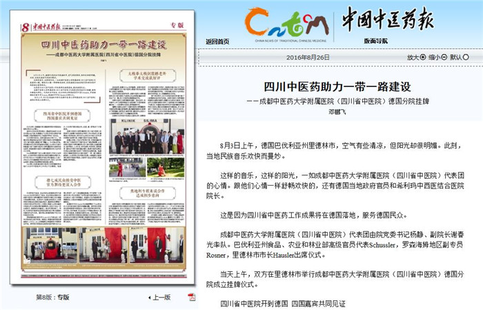 ——成都中医药大学附属医院(四川省中医院)德国分院挂牌