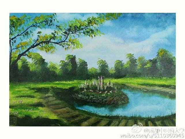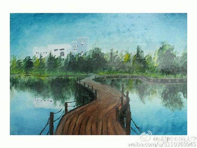 刀画集国画、油画之长刀,作画时,以刮、拉、挫等刀法为主,校园美景在这一刮一拉中,竟然有一丝柔美梦幻的意境,金黄的银杏、清澈的溪流、宁静的亭子、茂盛的芦苇在画面中充分展现了刀法的精湛,真是刀刀有章法呀!厉害了我的同学!快来感受一波高能!(封面新闻:樱桃大丸子)