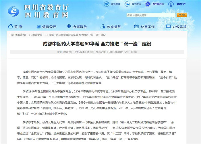 成都中医药大学喜迎60华诞 全力推进“双一流”建设