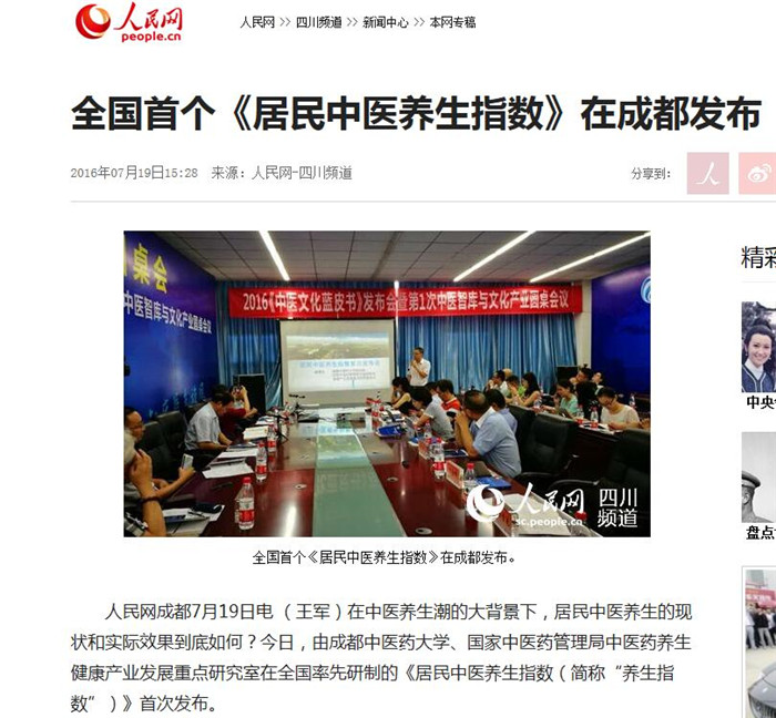 人民网成都7月19日电 (王军)在中医养生潮的大背景下,居民中医养生的现状和实际效果到底如何?今日,由成都中医药大学、国家中医药管理局中医药养生健康产业发展重点研究室在全国率先研制的《居民中医养生指数(简称“养生指数”)》首次发布。