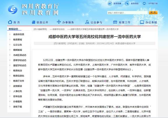 成都中医药大学等五所高校将共建世界一流中医药大学