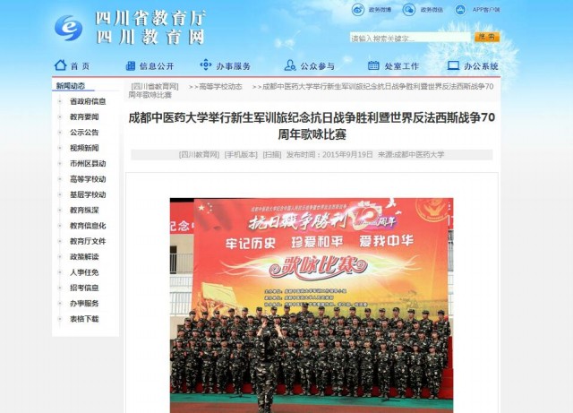 成都中医药大学举行新生军训旅纪念抗日战争胜利暨世界反法西斯战争70周年歌咏比赛