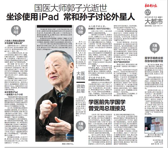 国医大师郭子光逝世 坐诊使用iPad 常和孙子讨论外星人