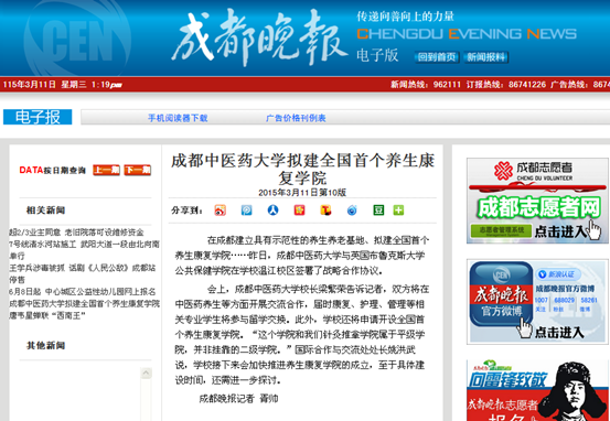 在成都建立具有示范性的养生养老基地、拟建全国首个养生康复学院……昨日,成都中医药大学与英国布鲁克斯大学公共保健学院在学校温江校区签署了战略合作协议。